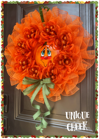 WREATH KIT | PUMPKIN FACE ON CHARACTER BOARD |ORANGE/GREEN | KIT304CH