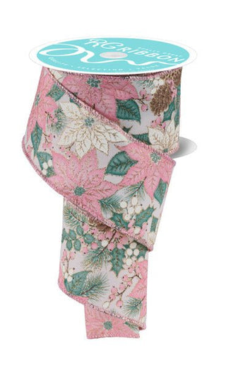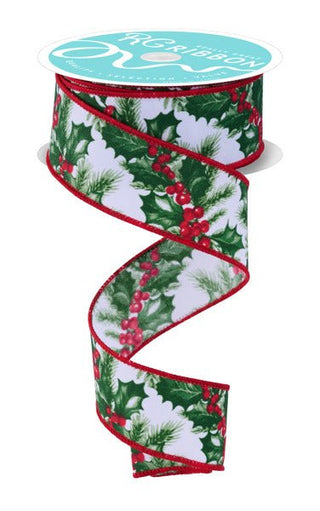 RIBBON | 2.5"X10YD | BELLS/HOLLY/PINE/BERRIES | IVORY/GOLD/RED/GREEN | RGE154730