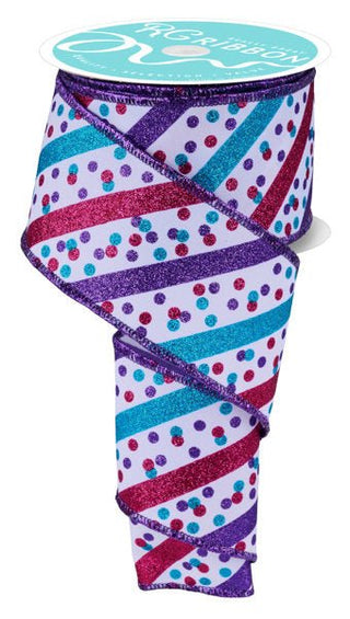 RIBBON | 1.5"X10YD | HORIZONTAL STRIPE GLITTER | White/Red/Emrld/Lime | RGF191806