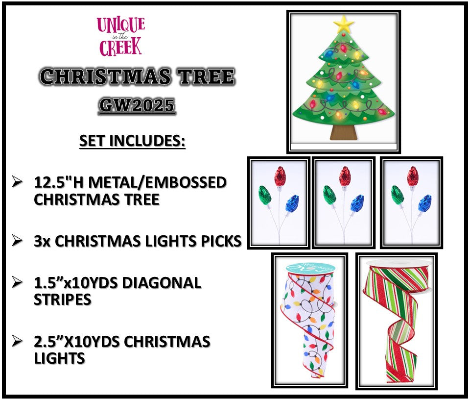 MATCHING SIGN/RIBBON SET | EMBOSSED CHRISTMAS TREE W/LIGHTS | GW2025