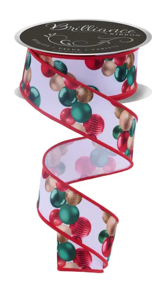 RIBBON | 1.5"X10YD | BALL ORNAMENT GARLAND | WHITE/RED/EMERALD | LS11424N