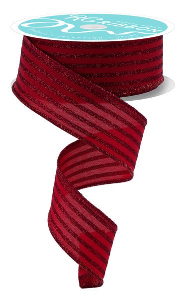 RIBBON | 1.5"X10YD GLITTER VERTICAL STRIPE | CRANBERRY/BURGUNDY | RGF1970Y6 | TAIWAN