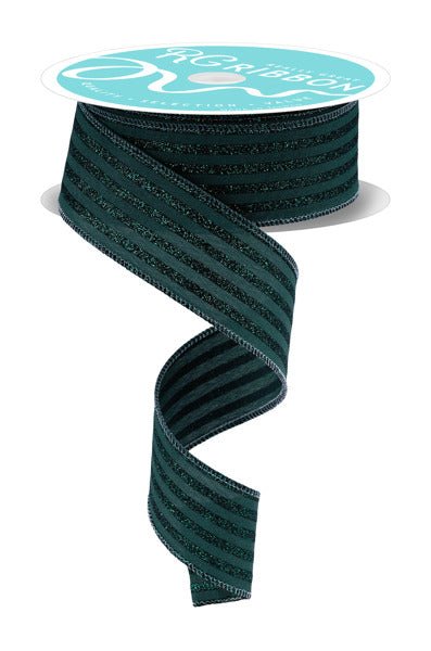 RIBBON | 1.5"X10YD GLITTER VERTICAL STRIPE | HUNTER GREEN | RGF197012
