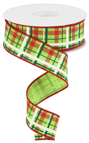 RIBBON | 1.5"X10YD PRINTED PLAID ON ROYAL | LIME/RED/EMERALD/WHITE | RGC15402W