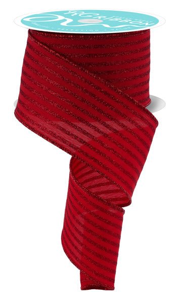 RIBBON | 2.5"X10YD GLITTER VERTICAL STRIPE | RED| RGF197124