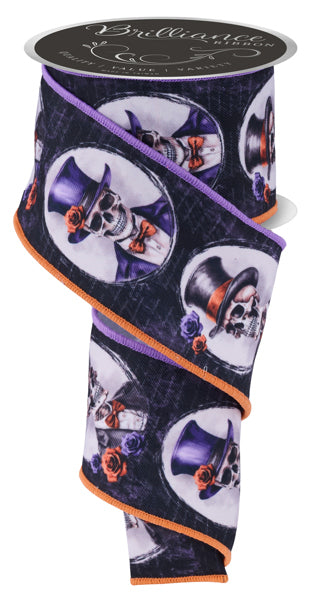 RIBBON | 2.5"X10YD | SKELETAL PORTRAITS | BLK/PUR/OR | LS112989