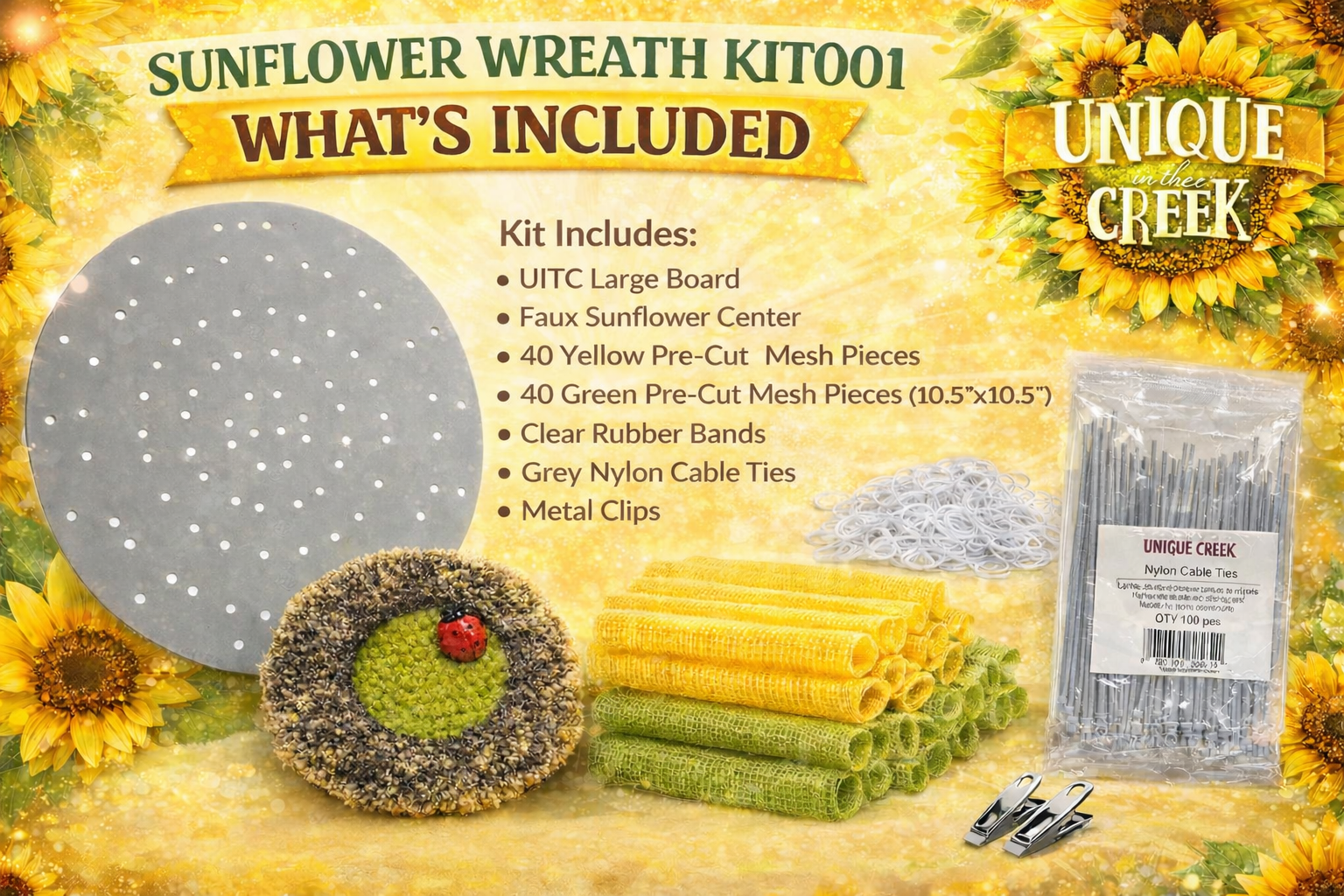 WREATH KIT | PRE-CUT DECOMESH | SUNFLOWER JUTE | YELLOW/MOSS GREEN | KIT001SUN-26