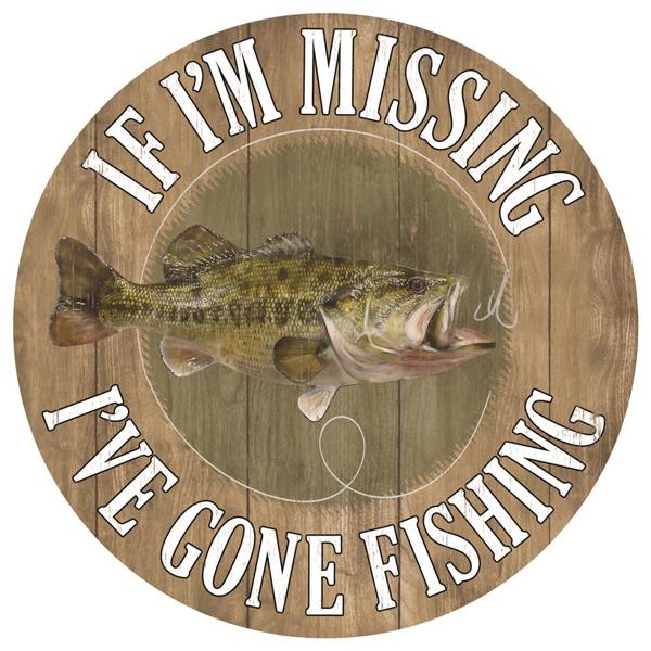 WREATH SIGN | 12" DIA | METAL SIGN | GONE FISHING | MD0490