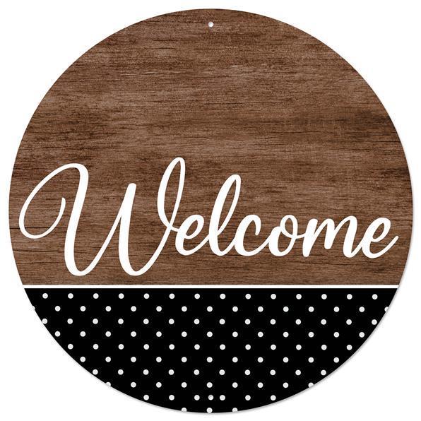 WREATH SIGN | 12"DIA METAL | WELCOME BRWN WOOD/DOTS SIGN | EVERYDAY | MD0897