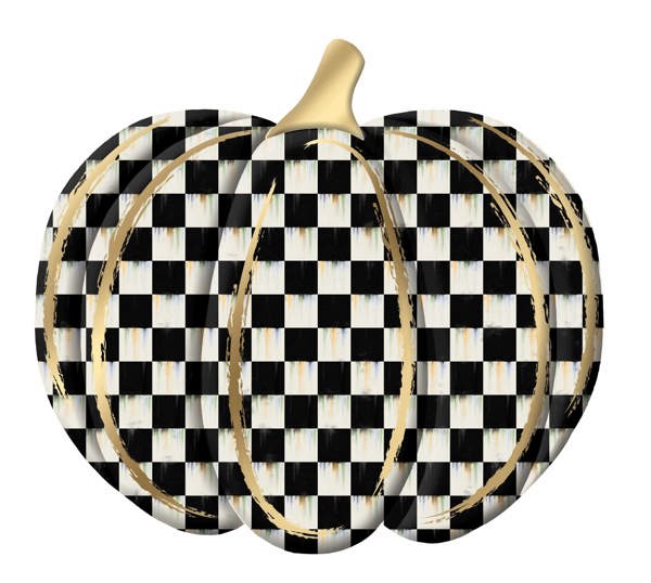 WREATH SIGN | 12"HX11" METAL EMBOSSED ANTIQUE CHECK PUMPKIN | BLACK/ ANTIQUE WHITE | MD165902