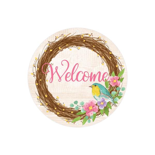 WREATH SIGN | 8"DIA | WELCOME | BIRD WITH NEST | EVERYDAY