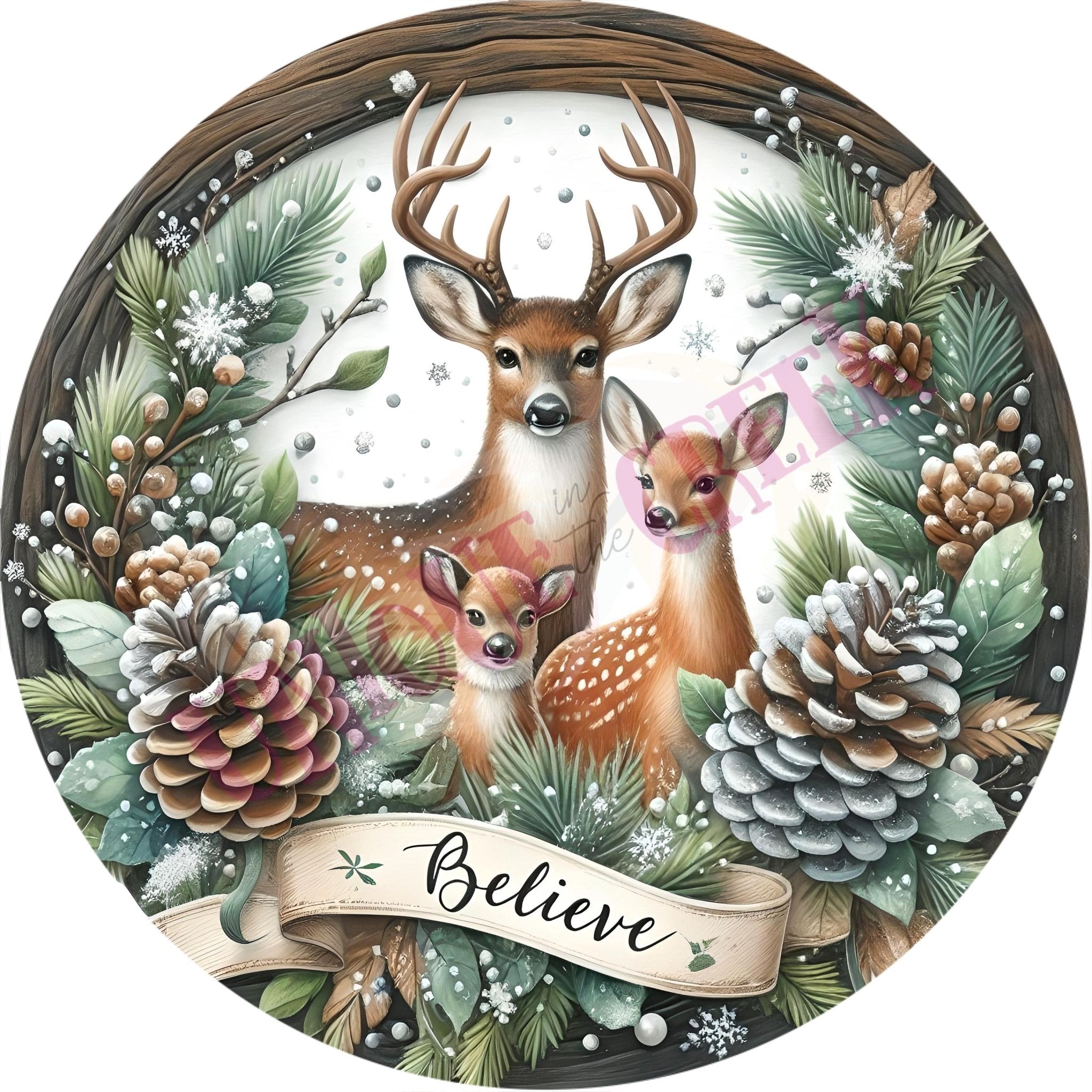 WREATH SIGN | BELIEVE | DEER FAMILY | WINTER | 2120