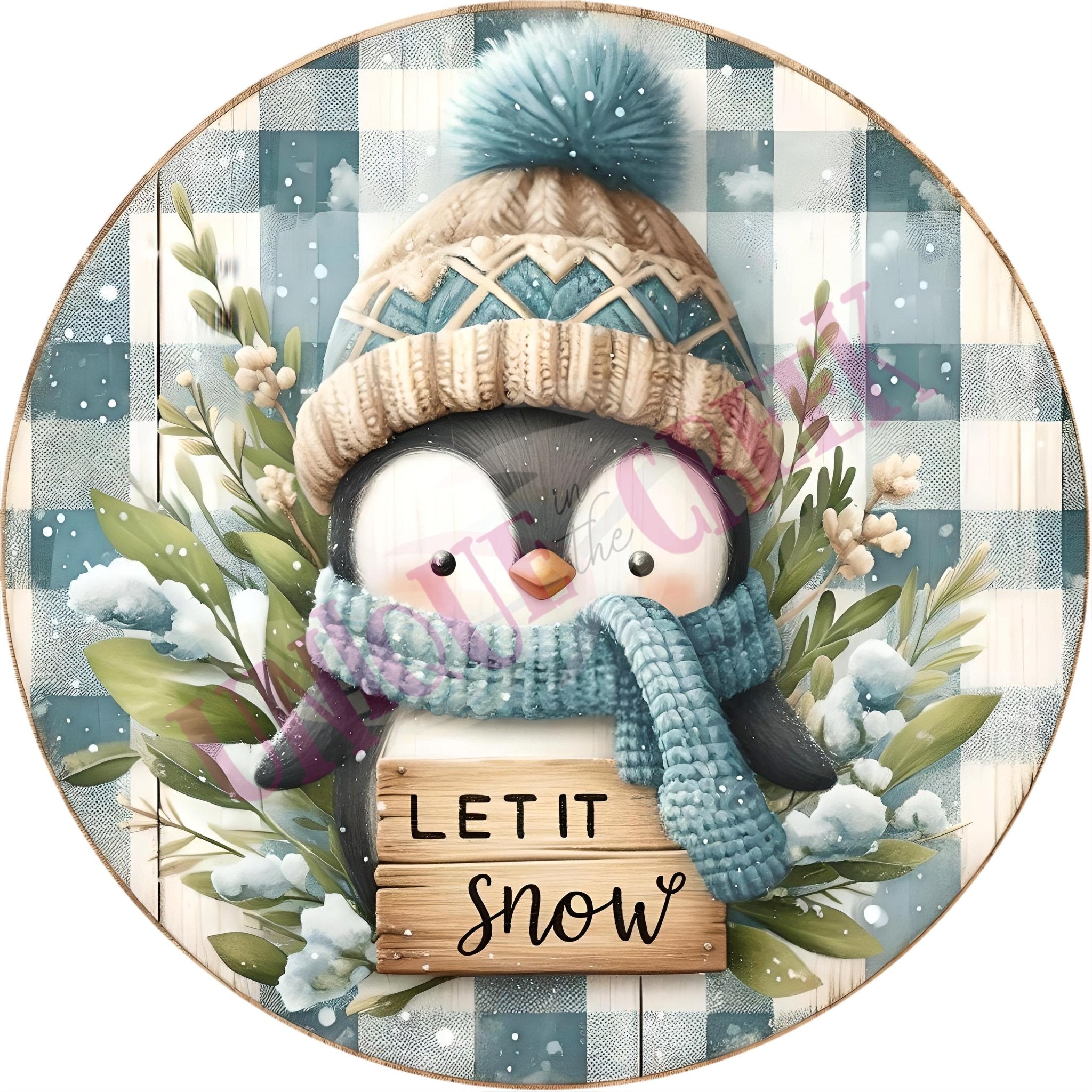 WREATH SIGN | LET IT SNOW | PENGUIN | SMOKE BLUE/SAGE GREEN | 2126
